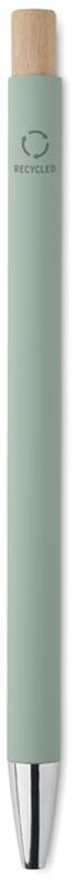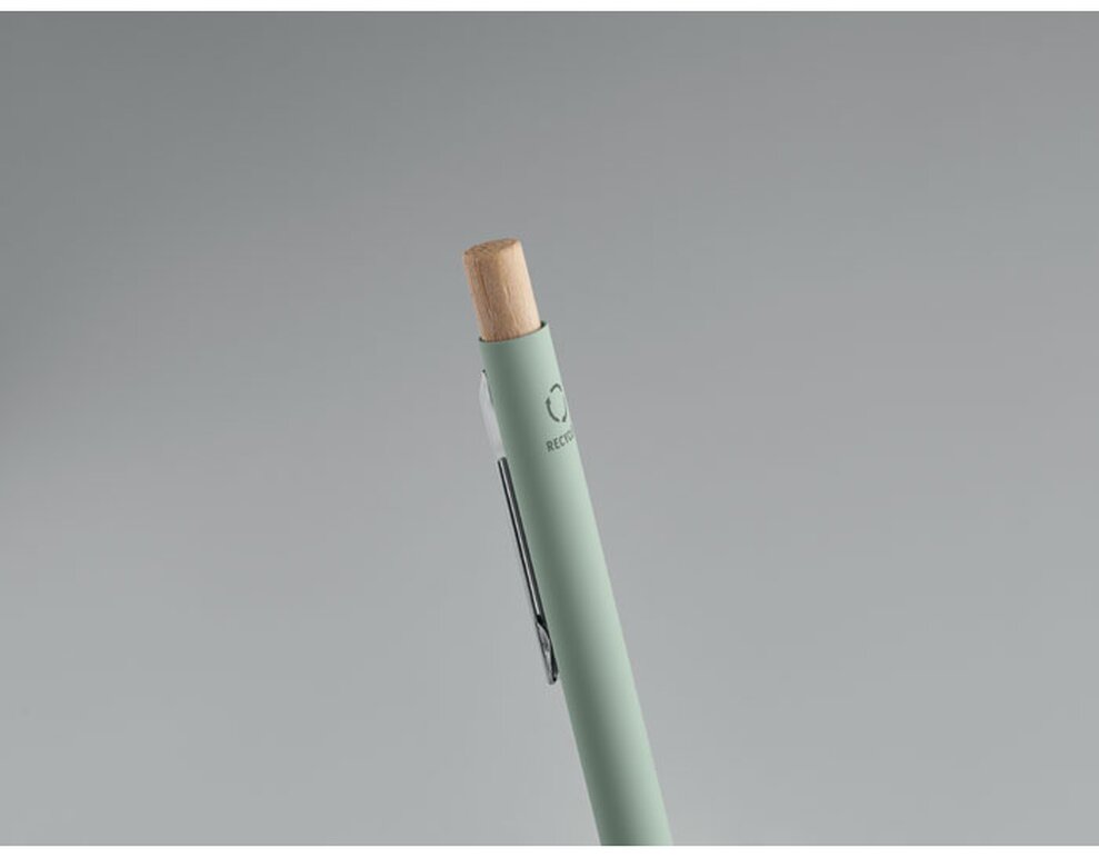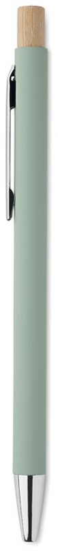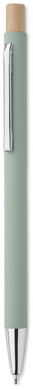 Kuličkové pero z recyklovaného hliníku s bambusovým tlačítkem. Stříbrný hrot a klip. Modrý inkoust.
