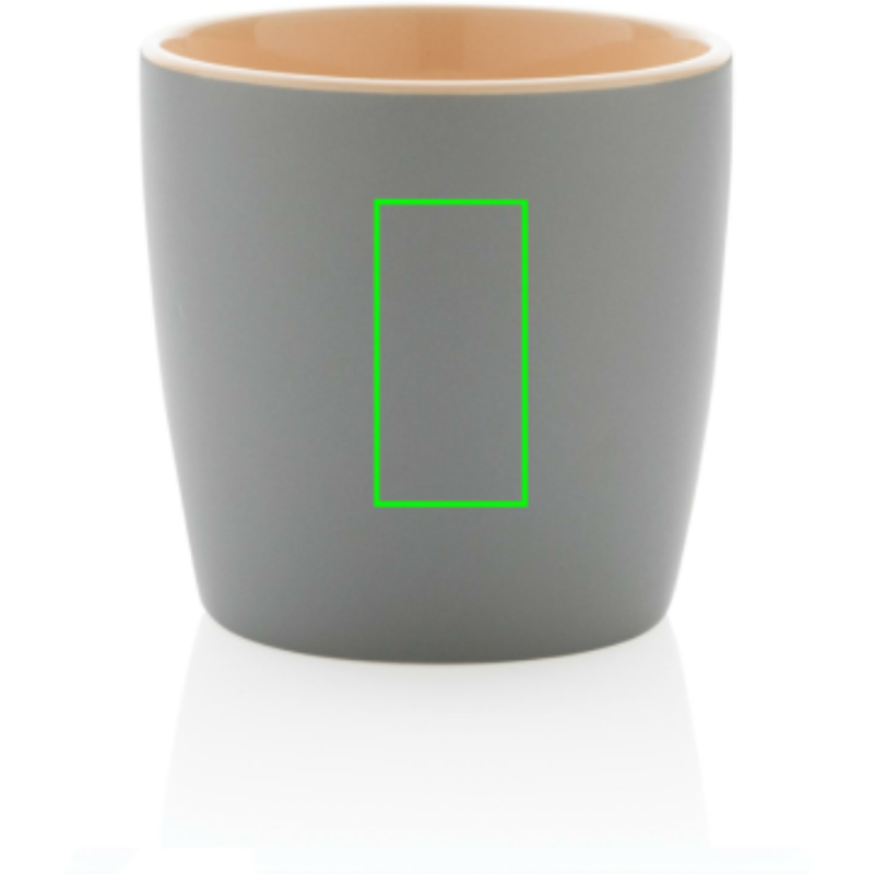 Jednoduchý keramický hrnek s matnou vnější a barevnou vnitřní částí. Vhodné do myčky nádobí s odolností až 125 mycích cyklů pro jakoukoliv dekorační techniku (v souladu s EN12875-1). Baleno v dárkové krabičce. Objem: 300ml.