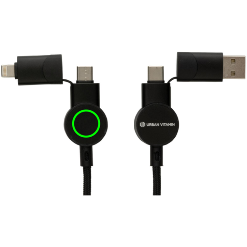 Nabíjecí kabel 6 v 1, jenž umožňuje nabíjení maximální rychlostí až do výkonu 45 W. Obashuje pouzdro vyrobené z recyklovaného TPE plastu s RCS certifikací, vnitřní část kabelu z recyklovaného TPE, vnější část z recyklovaného PET. Podíl použitého recyklovaného materiálu vzhledem k celkové váze produktu: 52 %. Kabel disponuje 5 konektory: USB C/USB A vstup, USB C/micro USB/iOS výstup. USB C je vhodné pro nabíjení moderních telefonů, ale i MacBooků. USB A má dvojí funkci (vstup i výstup) pro nabíjení jakéhokoliv zařízení z jakéhokoliv jiného zdroje. Produkt je vyroben kompletně bez PVC. Max výkon USB C do Lightning: 18W, max výkon USB C do USB C: 45W. Délka: 120 cm. Podporuje nabíjení i přenos dat.