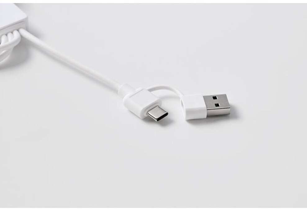 Klíčenka s nabíjecím kabelem se vstupem: 2v1 type-C a type-A. Výstup: Nabíjení hodinek (Samsung® a Apple®), 2x type-C a micro-B (2v1 pinu). Kabel vyrobený z recyklovaného TPE.