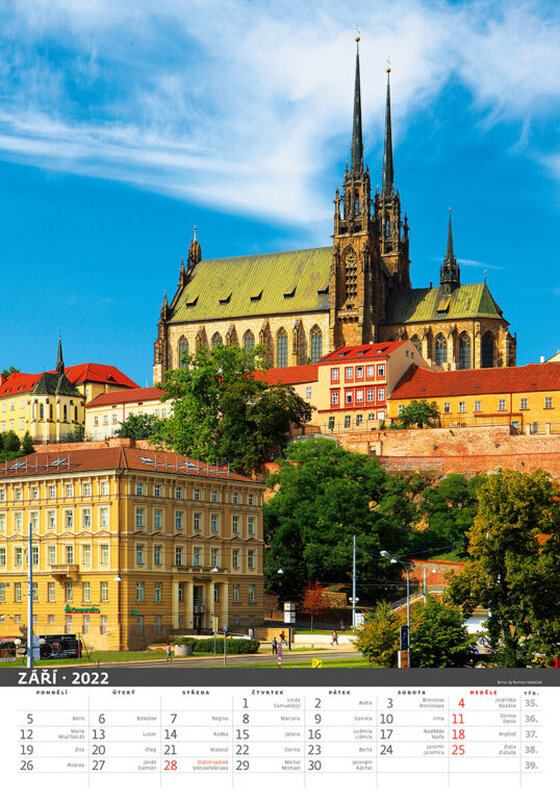 Nástěnný kalendář zaměřený na moravské památky a města.