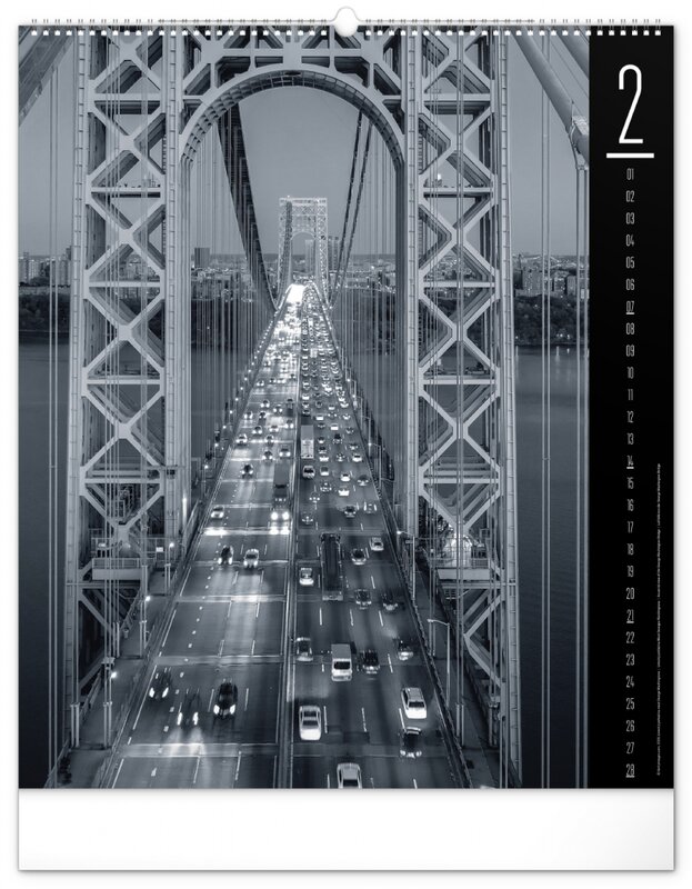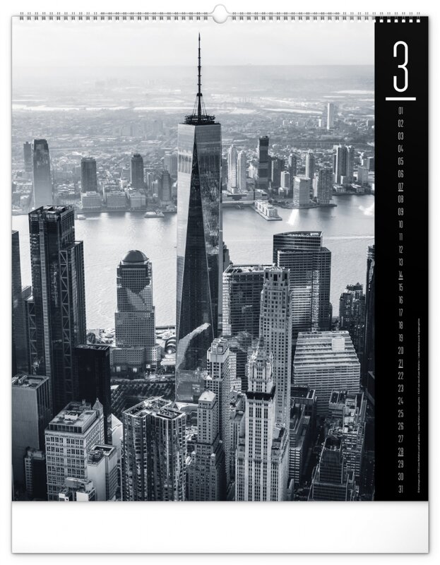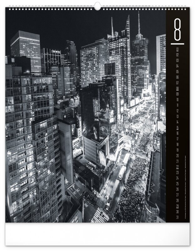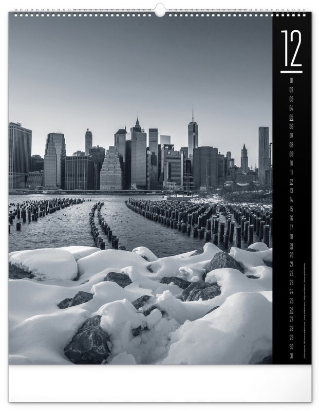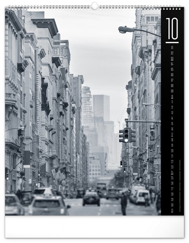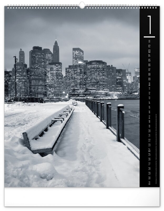 Kalendář z kolekce Silver Collection obsahuje velkoformátové fotografie klasických pamětihodností města New Yorku.