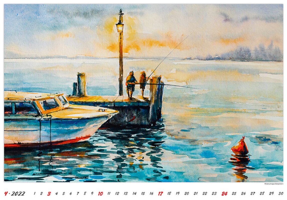 Nástěnný kalendář s malovanými obrázky s tématikou vody.