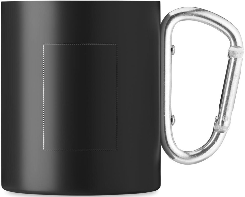 Nerezový hrnek s dvojitou stěnou a rukojetí ve tvaru karabiny.