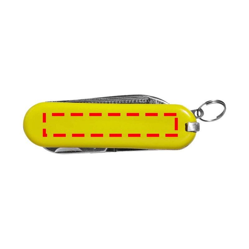 Multifunkční nůž OSCAR 5-v-1 - kapesní nůž s nožem, nůžkami vybavenými pružinou, pinzetou, párátkem, pilníkem na nehty a malým dvojitým kovovým kroužkem na klíče.