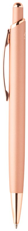 Kuličkové pero z recyklovaného hliníku s pogumovaným povrchem a detaily z růžového zlata. Se speciální povrchovou úpravou pro zrcadlové laserové gravírování v barvě růžového zlata. S modrou náplní.