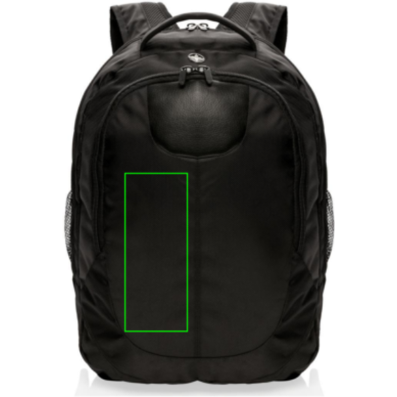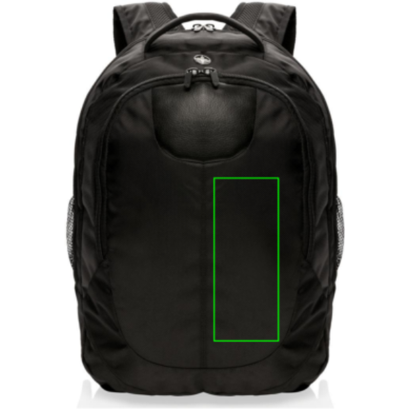 Batoh na notebook z polyesteru 1680D v kombinuje outdoorový komfort i ochranu. Batoh má zabudovány kapsy pro všechny vaše nezbytnosti, je vybaven polstrovaným oddílem na notebook 15,6" a přihrádkou na tablet. Kromě větších kapes naleznete také očka na pera či síťované kapsy. Na ramenním popruhu je umístěn audio konektor pro možnost připojení sluchátek a přihrádka na sluneční brýle. Mimo jiné je vybaven také pláštěnkou. Ochranný vzor®.