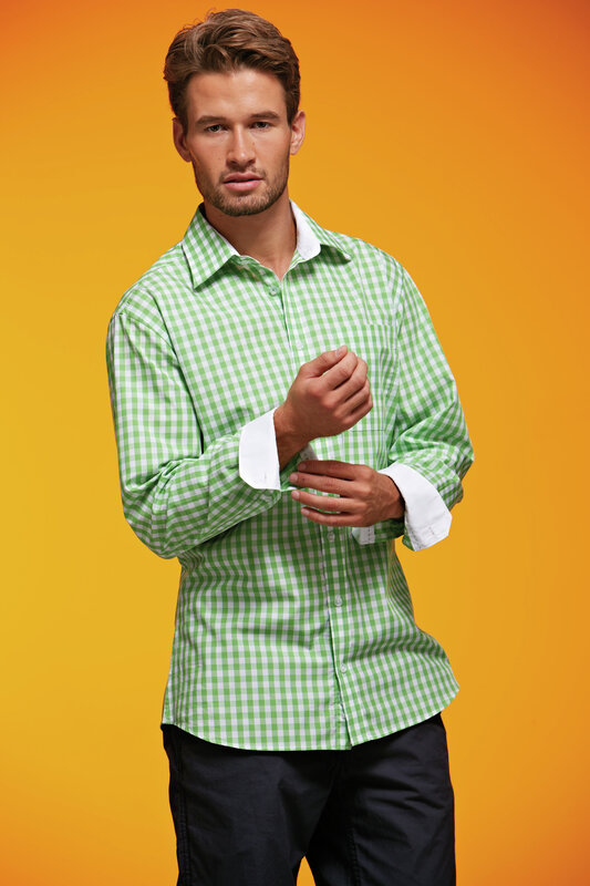Pánská košile s dlouhým rukávem CHECKED JN617 Zeleno-bílá 003.801