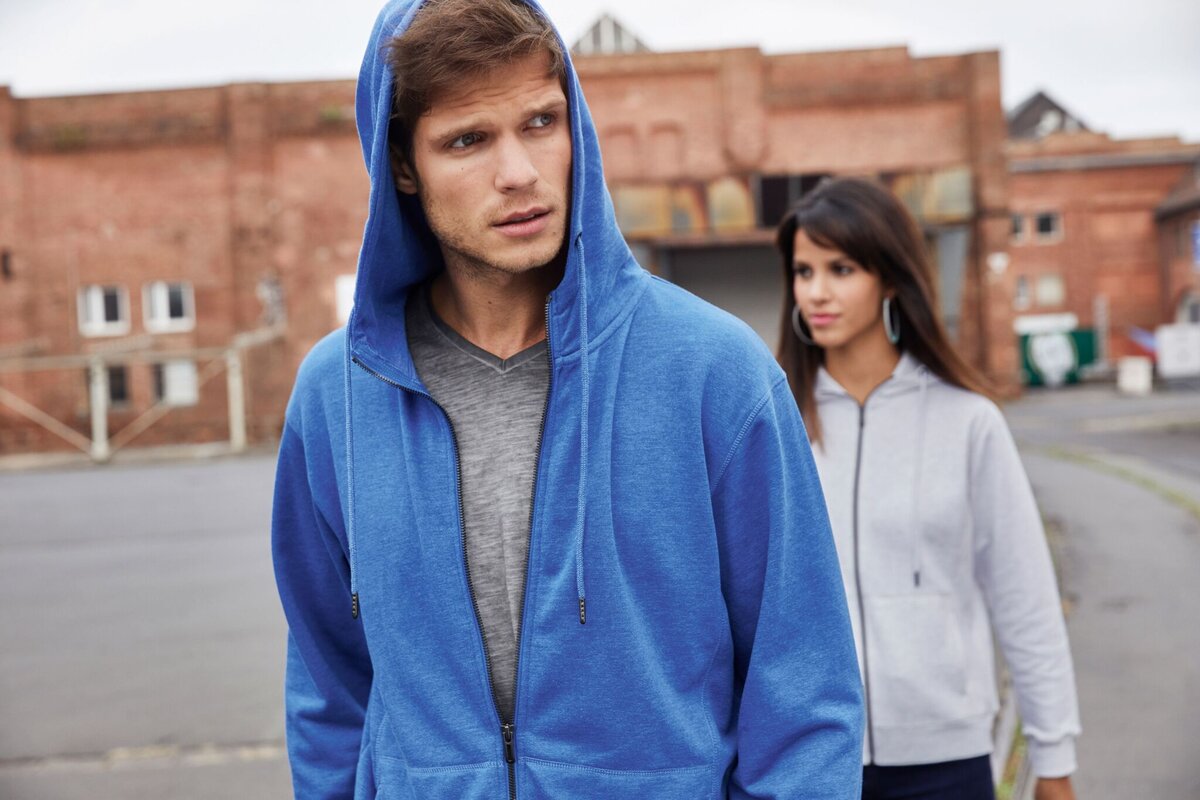Pánská mikina s kapucí a zapínáním na zip z bio bavlny a polyesteru.