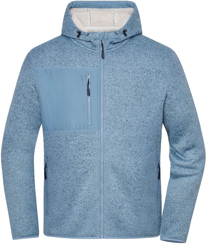 Stylová fleecová bunda pro práci i volný čas s melanžovým vzhledem, ideální pro firemní potisk. Měkký hřejivý materiál s pleteninou zvenčí a nadýchaným sherpa fleece uvnitř zajišťuje maximální teplo a komfort. Pevná nastavitelná kapuce a praktické kapsy.