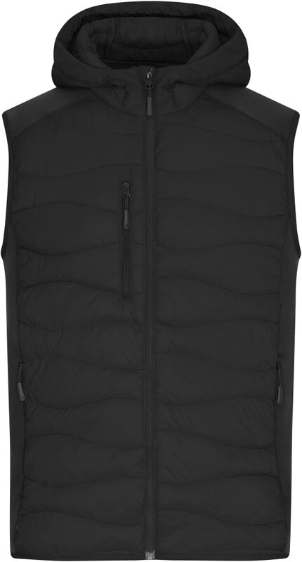 Pánská sportovní vesta s kapucí a prošíváním, Prošívaný je přední a zadní díl a kapuce, Na bocích strečový fleece, Zip po celé délce, ochrana brady, Náprsní kapsa a boční kapsy na zip, 2 vnitřní kapsy, Velmi teplá díky výplni sorona®AURA, Značkové zipy - YKK