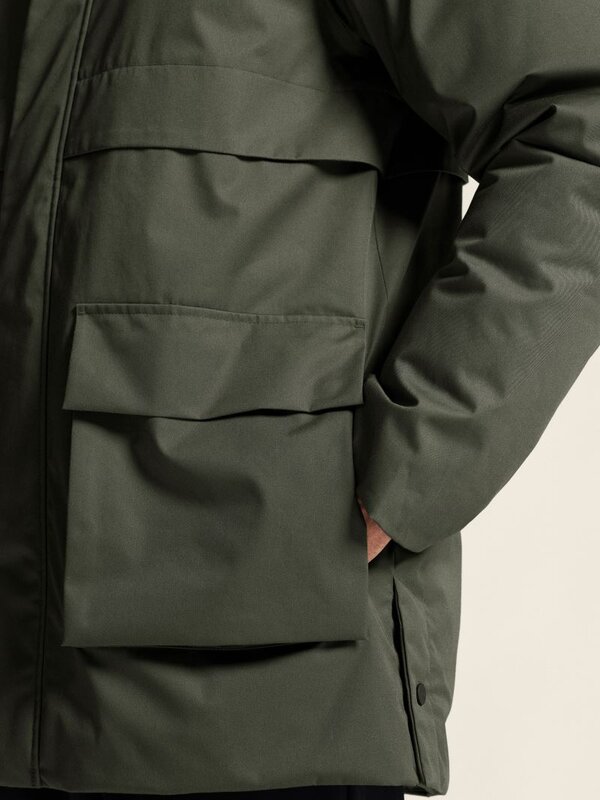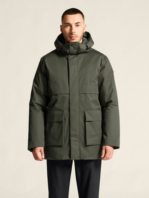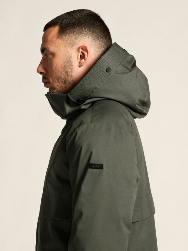 Stylová zateplená parka s voděodpudivým materiálem a kvalitním zpracováním. Kombinace recyklovaného polyesteru a bavlny zajišťuje tepelný komfort a odolnost. Skrytý dvoucestný zip YKK a svařované hlavní švy zaručují profesionální vzhled.