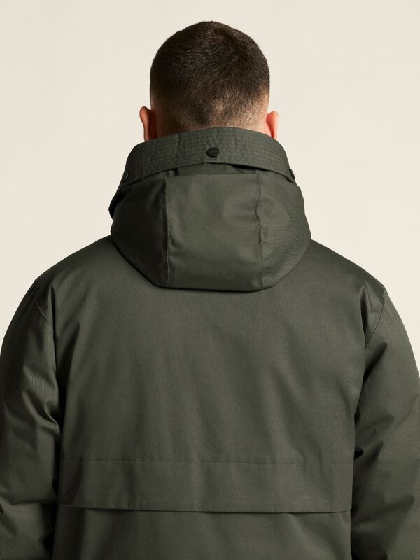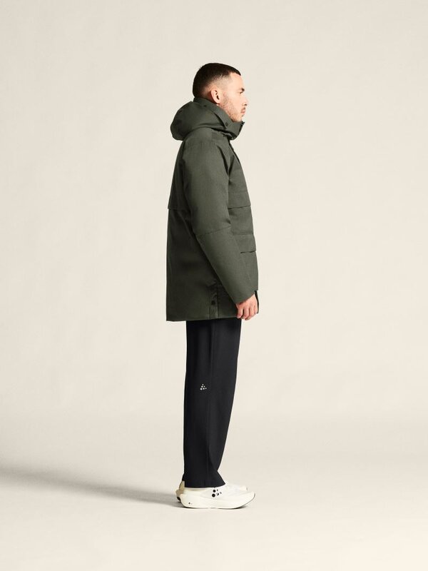 - Design: Klasický pánský střih, nastavitelná kapuce, skrytý dvoucestný zip YKK