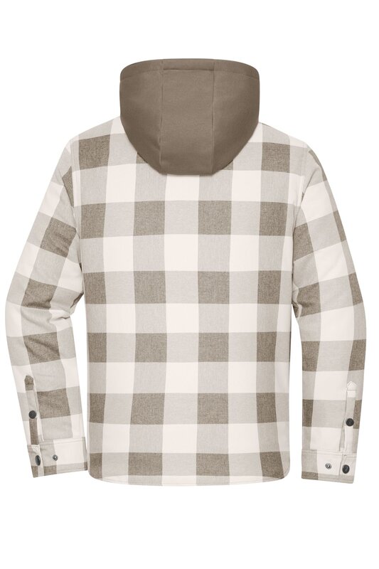 Pánská zateplená pracovní kostkovaná košile s kapucí JN1872 Dusty hněda-Cement 058.808
