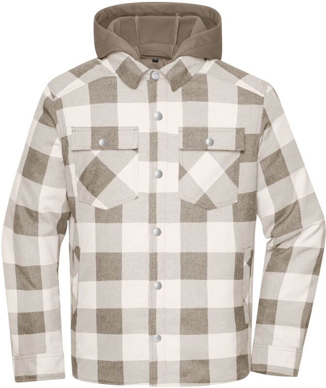 Trendy zateplená kostkovaná košile s kapucí pro práci i volný čas, ideální pro firemní potisk. Celoplošně lehce zateplená s kapucí z elastického fleecu (hladká zvenku, počesaná zevnitř) zajišťuje maximální teplo a komfort. Předtvarovaný límec a praktické kapsy s patentkami.