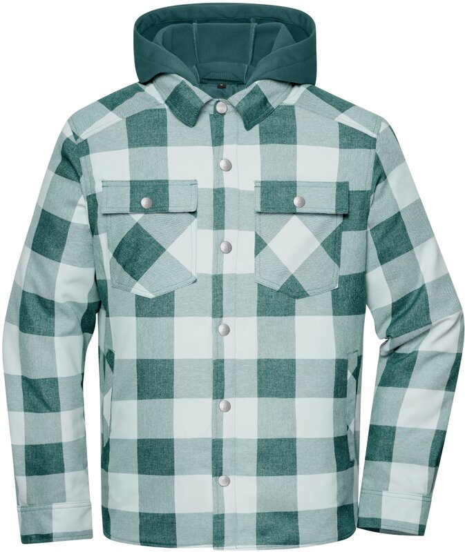 Trendy zateplená kostkovaná košile s kapucí pro práci i volný čas, ideální pro firemní potisk. Celoplošně lehce zateplená s kapucí z elastického fleecu (hladká zvenku, počesaná zevnitř) zajišťuje maximální teplo a komfort. Předtvarovaný límec a praktické kapsy s patentkami.