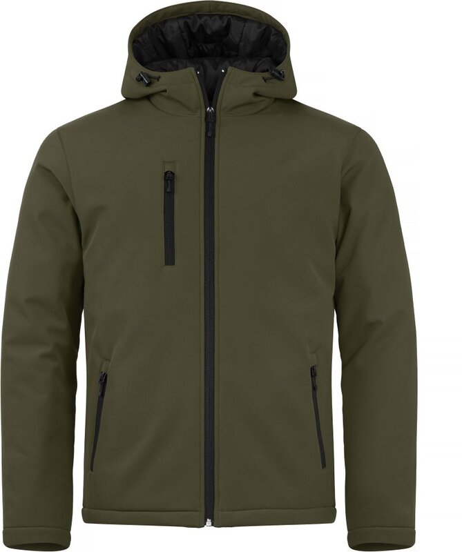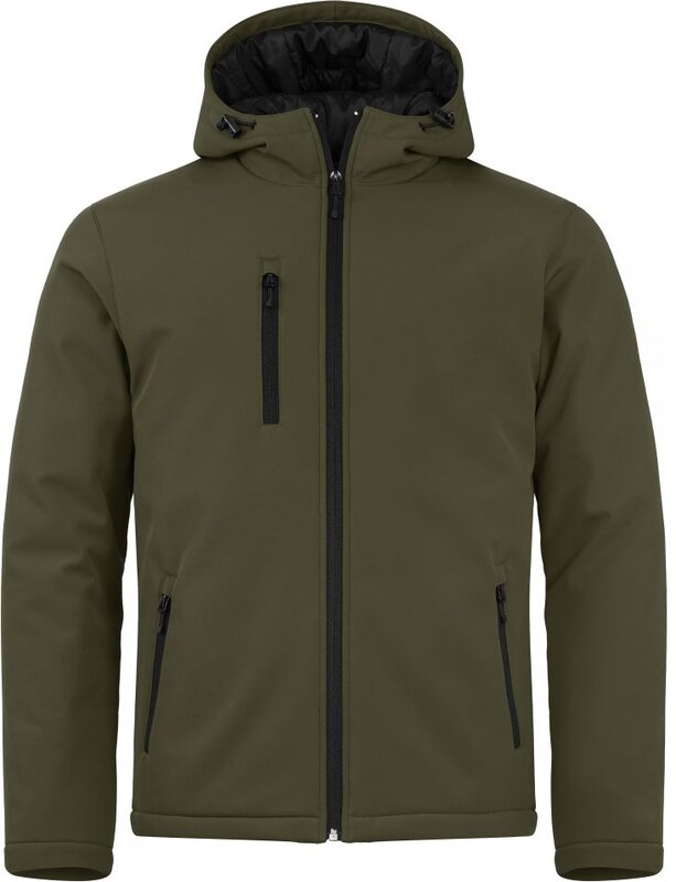 Pánská zateplená softshellová bunda s kapucí Olivově zelená 056.240