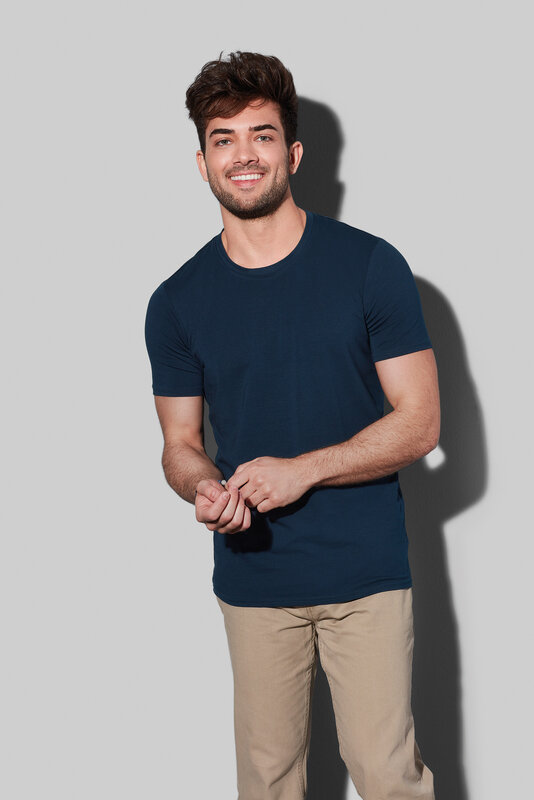 Triko v padnoucím vypasovaném střihu s příměsí elastanu. Úzký kulatý výstřih vč. vnitřní zpevňující lemovky v kontrastní barvě. Švy na ramenou jsou zesílené. Štítek s označením velikostí je neutrální, bez názvu značky výrobce, triko je tak vhodné pro váš brand. Materiál je z 95 % česaná prstencová bavlna a 5 % elastan, single jersey, 170g/m². (Pouze varianta trika gey heather je 82 % bavlna / 14 % viskóza / 4 % elastan.) Praní je možné na 40° a nelze sušit v sušičce.
