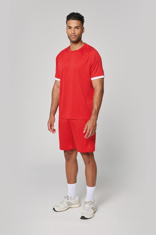 Elastický pas s vnitřní šňůrkou, antistatická úprava, regulující vlhkost a rychleschnoucí, certifikovaná veganská výroba bez živočišných přísad, štítek Tear Away, pratelné na 40° 140g/m², 100% polyester, interlock