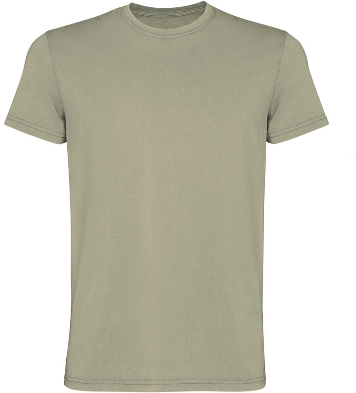Pánské tričko s krátkým rukávem. Sepraný vzhled. Žebrovaný kulatý výstřih 1 × 1. Krycí steh v tónu látky s uhlazenou povrchovou úpravou.