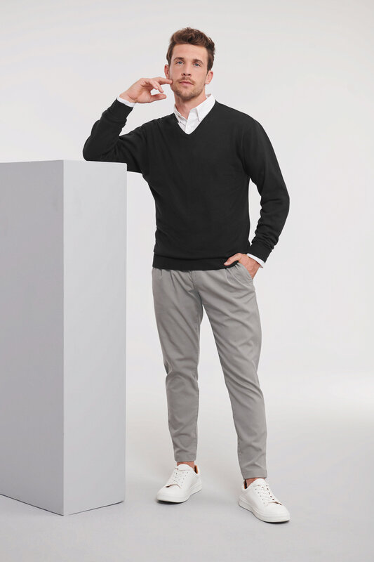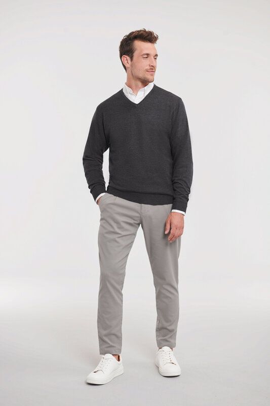 Pánský pletený svetr s výstřihem do véčka 710M Dřevěné uhlí 042.147