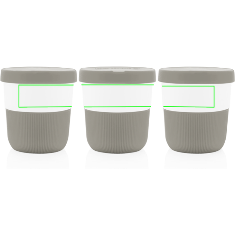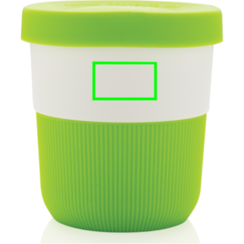 Odnosný hrnek s objemem 280ml navržen v ekologickém provedení a ve velikosti ideální téměř pod každý kávovar. Produkt je vyrobený z rostlinných materiálů (PLA) se silikonovým úchopem zabraňujícím popálení. Hrnek je bezpečný až do 100 °C a je 100 % bez melaminu.