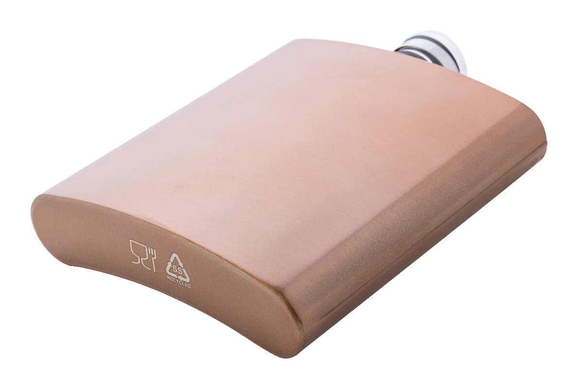 Recyklovaná nerezová butylka s lesklým kovovým povrchem, 200 ml.