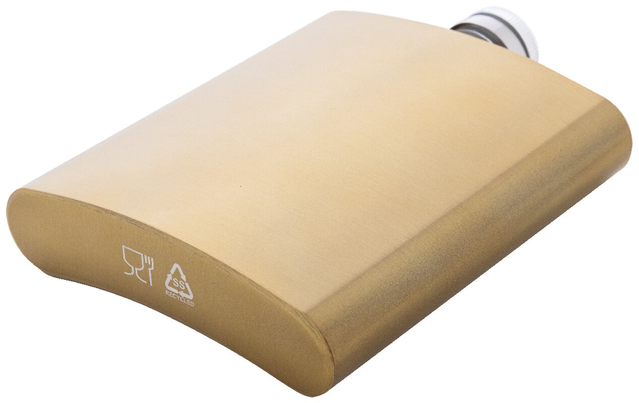 Recyklovaná nerezová butylka s lesklým kovovým povrchem, 200 ml.