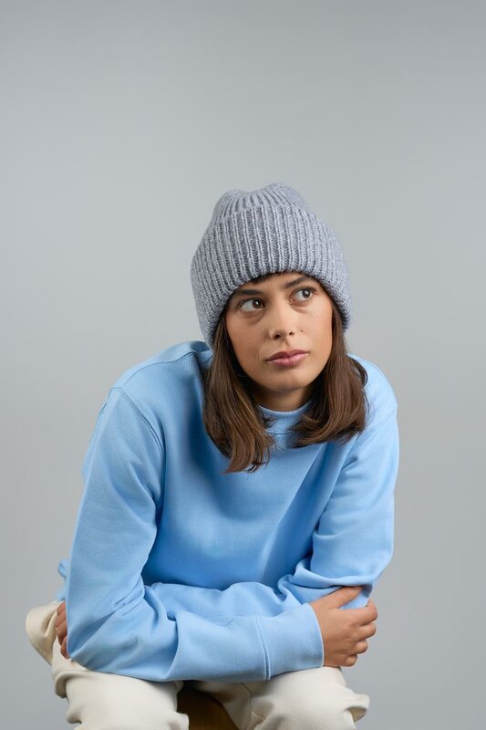 Široký lem, bezešvé provedení, melanžový vzhled, štítek Tear Away, ruční praní, nelze žehlit, nelze sušit v sušičce, nelze chemicky čistit 100% recyklovaný polyester