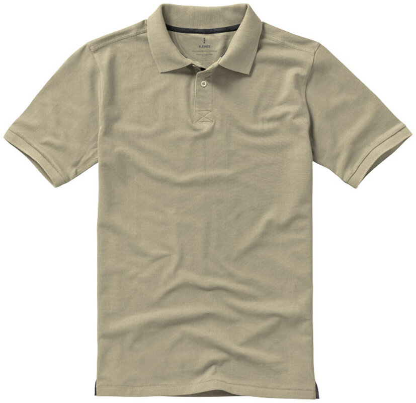 Pánská polokošile CALGARY s krátkým rukávem. Výstřih se 2 gravírovanými knoflíčky. Střih s výstřihem s 3 embosovanými knoflíčky. Předsunutá zpevňující lemovka výstřihu s řetízkovým stehováním. Logo tištěné v barvě na zádech. Boční rozparek s vnitřní sametovou lemovkou. Detaily s vybraným stehem. Hedvábná lemovka výstřihu. Sedlo. 1x1 žebrový úplet výstřihu a manžetek. 100% bavlna - piqué. Gramáž je 200 g/m².