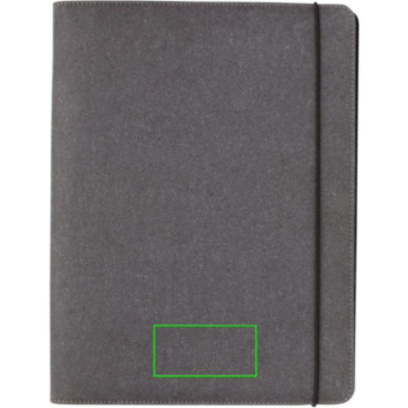 Portfolio ve formátu A4 vyrobené z recyklované kůže s elastickou gumičkou. Pro uchování dokumentů, vizitek, karet a dalších esenciálních kancelářských potřeb. 1 velká otevřená kapsa, 3 menší kapsy a 4 vizitkové sloty. Včetně poznámkového bloku s 24 stranami A4 a linkovaným papírem o gramáži 64 g/m2.