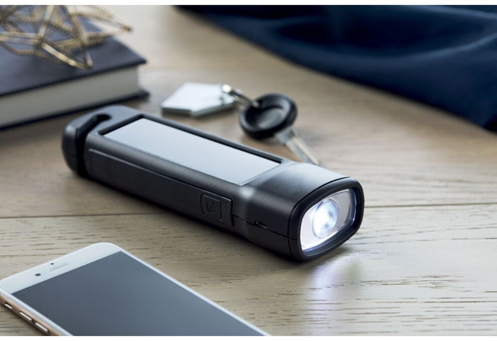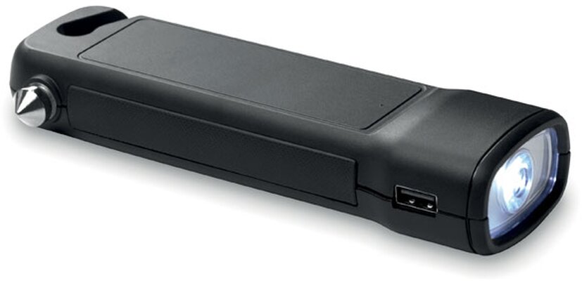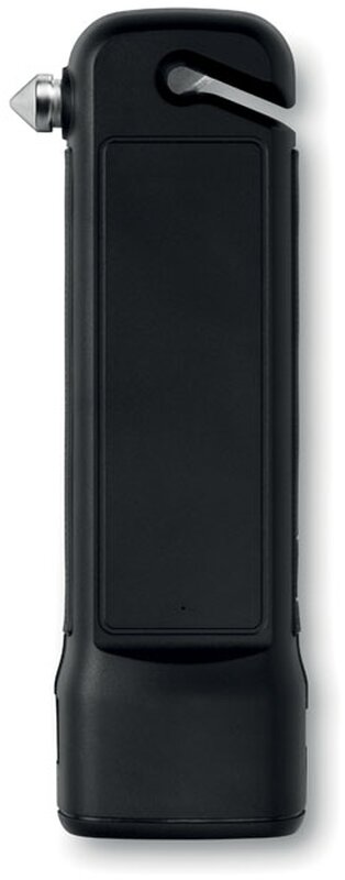 Praktický pomocník do auta. Power banka 4400 mAh se svítilnou, řezačkou na pás a kladívkem. Částečně solární nabíjení. Výstup DC5V/1A. Obsahuje konektor typu C.