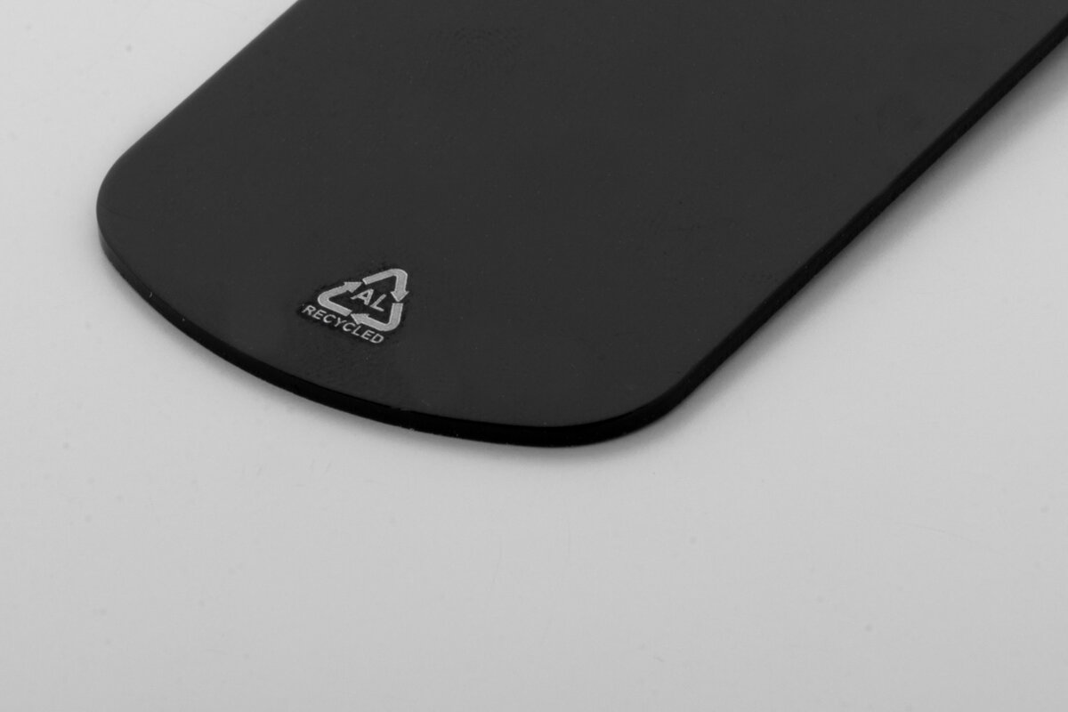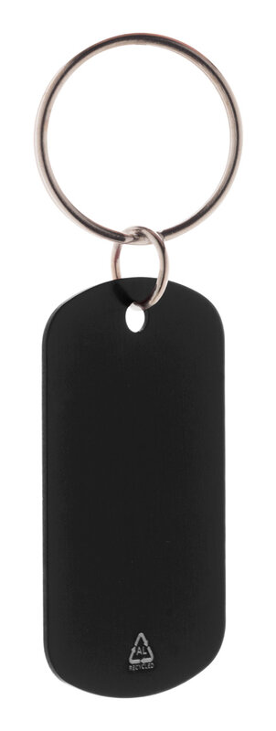 Přívěšek na klíče z recyklovaného hliníku s kovovým kroužkem.