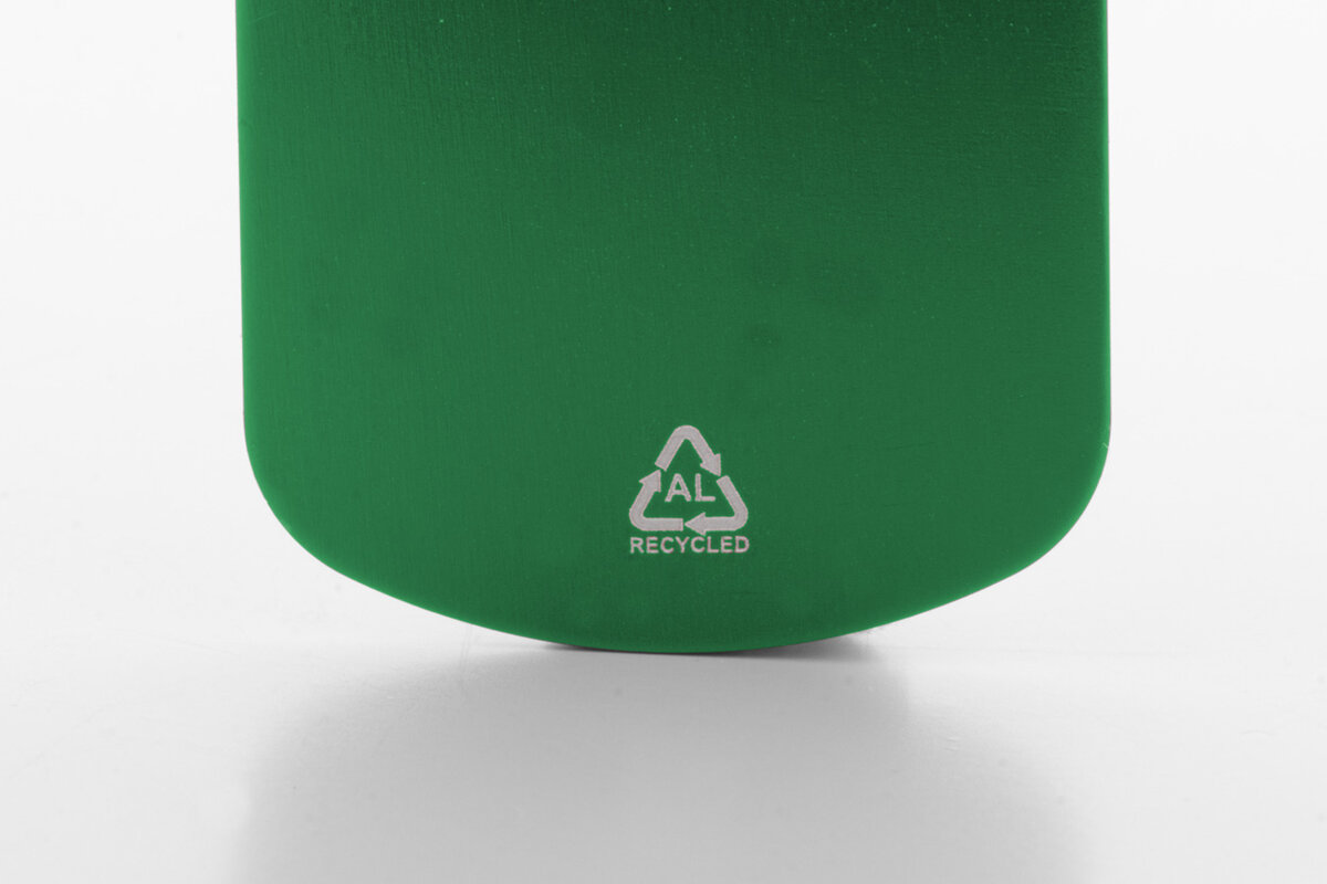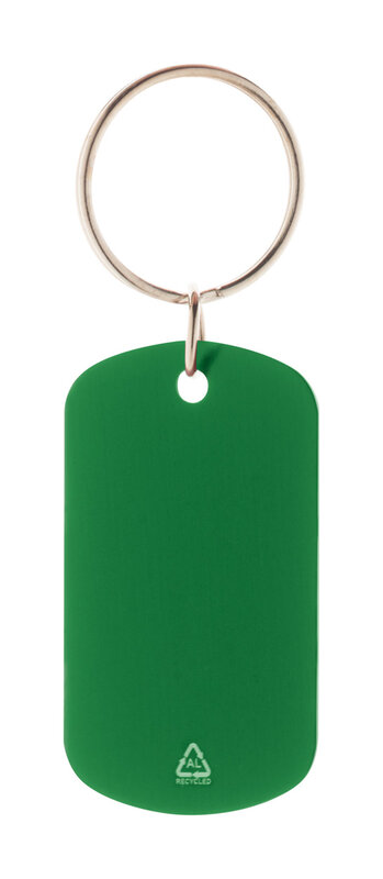 Přívěšek na klíče z recyklovaného hliníku s kovovým kroužkem.