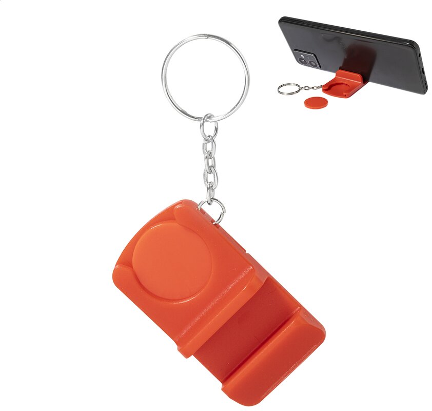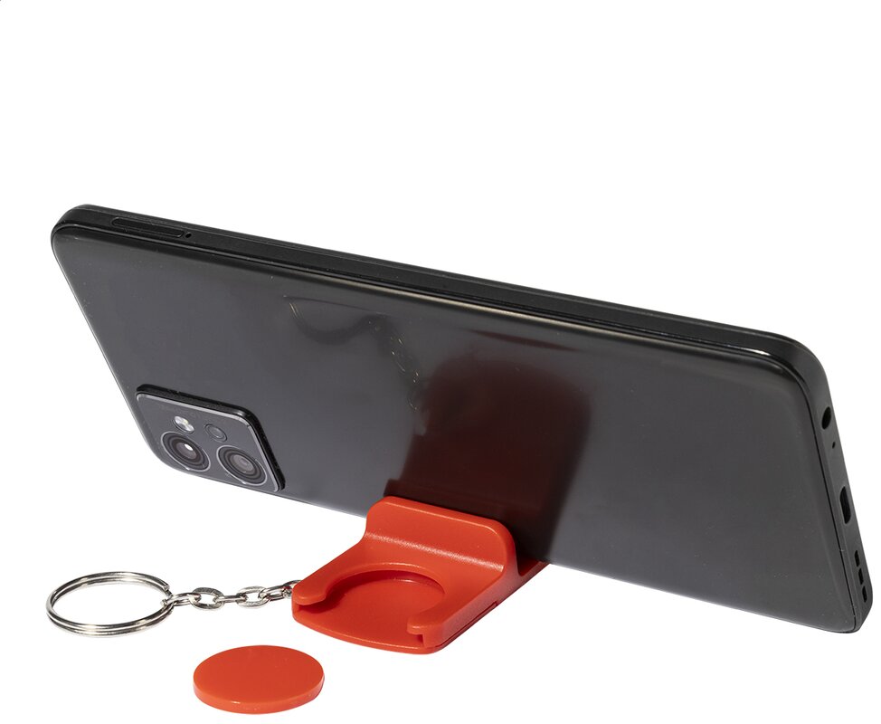 Přívěsek na klíče se žetonem do košíku z recyklovaného ABS materiálu a s držákem na mobilní telefon. Velikost mince: ø23×2 mm.