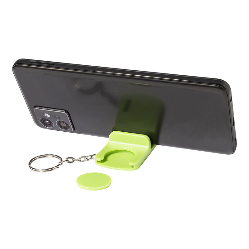 Přívěsek na klíče se žetonem do košíku z recyklovaného ABS materiálu a s držákem na mobilní telefon. Velikost mince: ø23×2 mm.