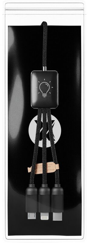 Nabíjecí kabel 5v1 z rPET se svítícím logem a hranatým dřevěným pouzdrem, SCX.design C38 Produktové číslo028.978