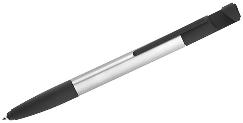 Praktická sada SET, kompaktních rozměrů, který v sobě zahrnuje až 8 funkcí: propiska, hrot na dotekové obrazovky, čisticí utěrka na obrazovky, stojánek na telefon, 2 šroubováky, 2 pravítka (palcové a centimetrové). Vyrobená z umělé hmoty. Spouštěcí mechanismus typu twist. Náplň typu X20 v modré barvě.