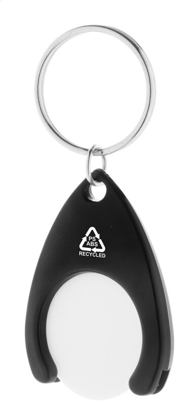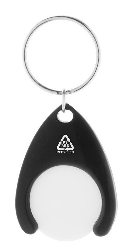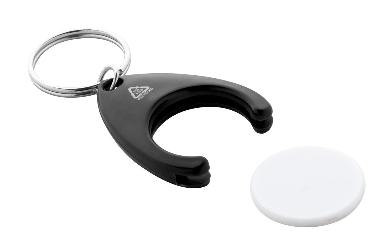 Přívěšek na klíče z recyklovaného ABS plastu s mincí do nákupního vozíku a kovovým kroužkem. Velikost mince: ø24×2 mm.