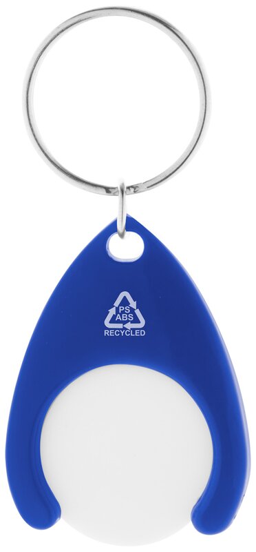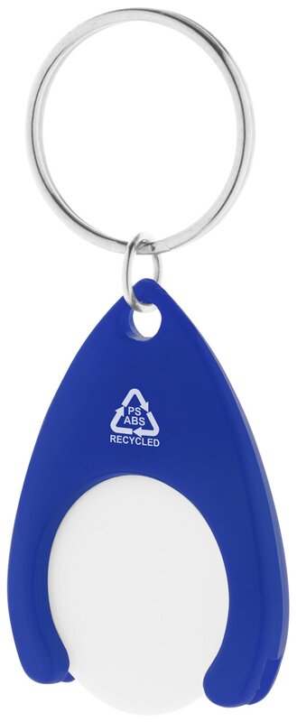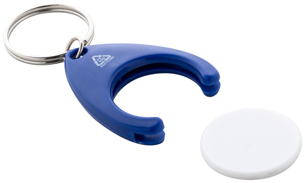 Přívěšek na klíče z recyklovaného ABS plastu s mincí do nákupního vozíku a kovovým kroužkem. Velikost mince: ø24×2 mm.
