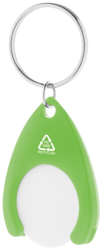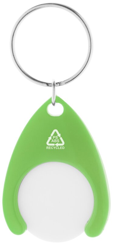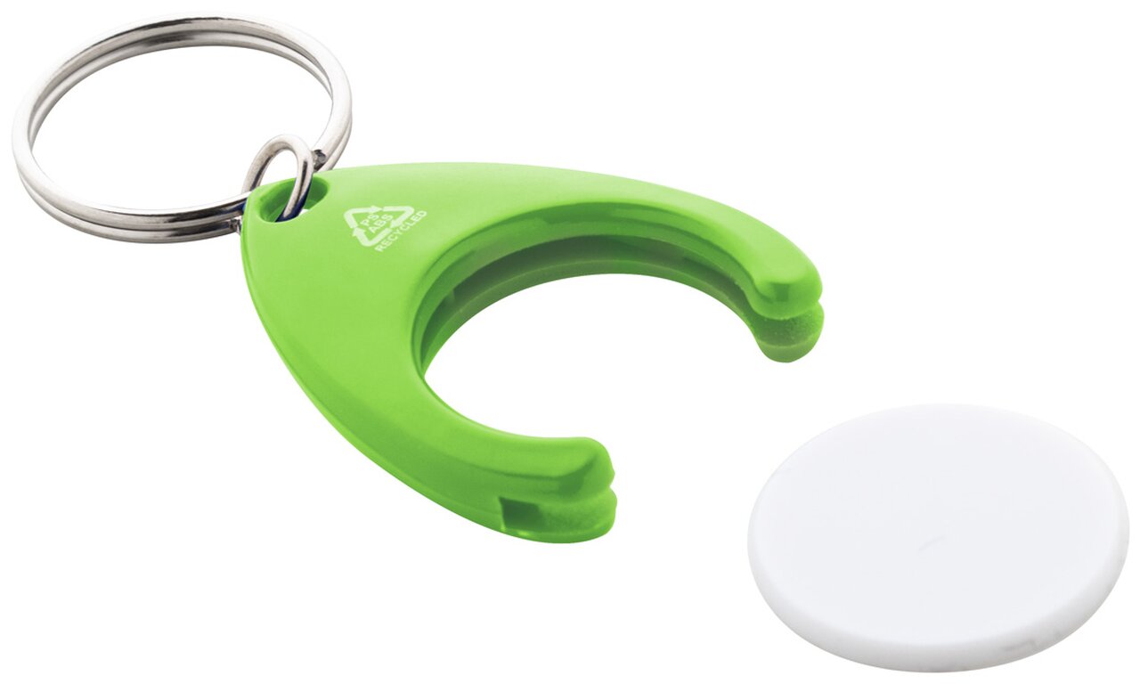 Přívěšek na klíče z recyklovaného ABS plastu s mincí do nákupního vozíku a kovovým kroužkem. Velikost mince: ø24×2 mm.