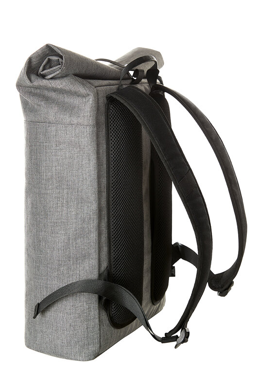 Městský batoh s magnetickým a ovinovacím uzávěrem, prostorná hlavní kapsa s polstrovanou přihrádkou na notebook, vrchový materiál rPET; zadní kapsa na zip; vypracovaná polstrovaná záda se skrytou kapsou na zip; polstrované dno, délkově nastavitelné polstrované ramenní popruhy s pryžovými poutky k upevnění např. slunečních brýlí; držadlo