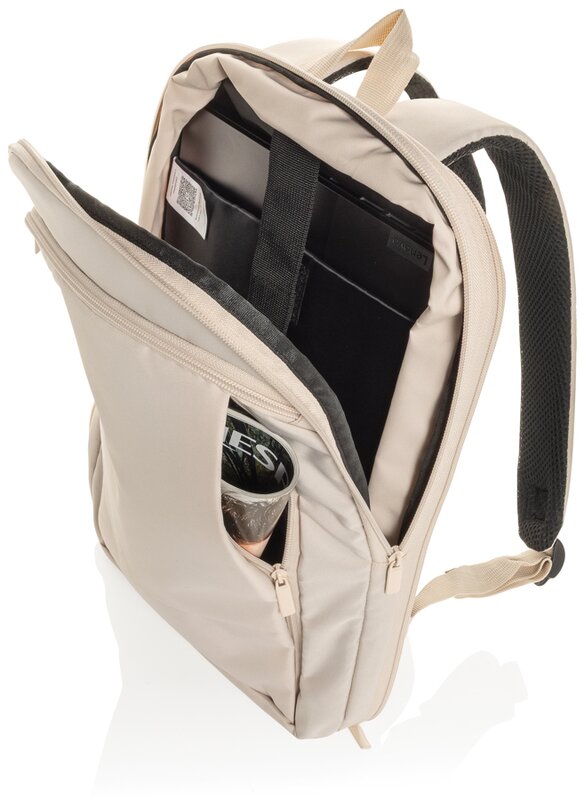Tenký batoh, který kombinuje eleganci, všestrannost a udržitelnost. Je ideální pro moderní profesionály. Batoh je velmi tenký, ale lze ho rozšířit podle potřeby. Vaše věci v něm zůstanou bezpečně uspořádané. Je vyroben z recyklovaného polyesteru s technologií AWARE™. Z každého prodaného kusu jde 2% na Water.org.