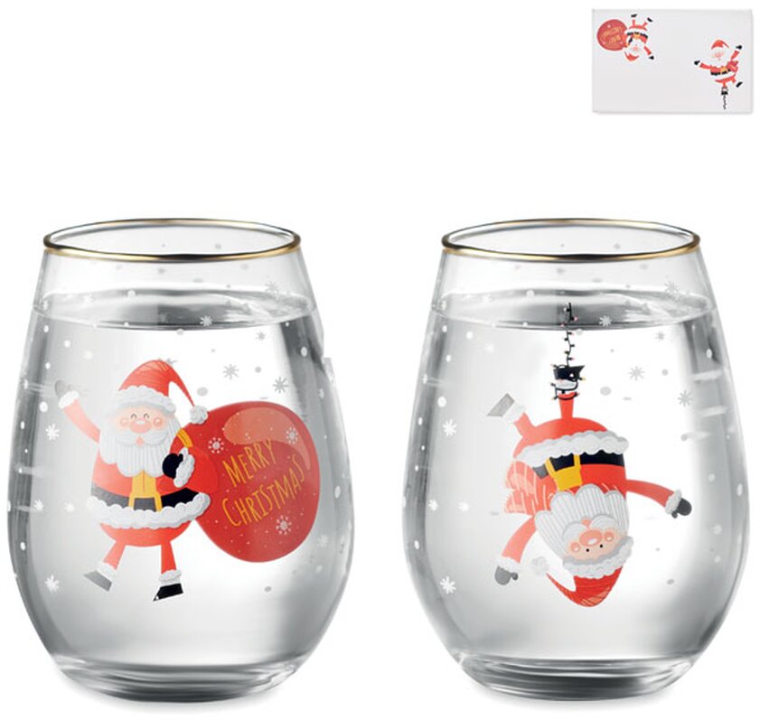 Sada 2 vánočních sklenic se zlatým okrajem. Dodáváno v dárkové krabičce. Objem: 330 ml.