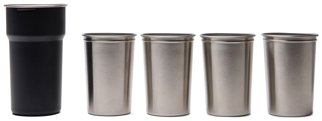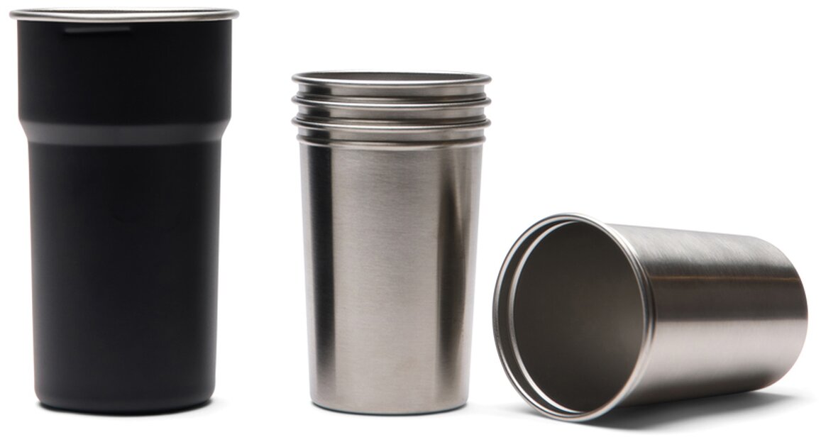 Čtyři kelímky o objemu 250 ml se prakticky ukládají do jednoho většího kelímku o objemu 380 ml