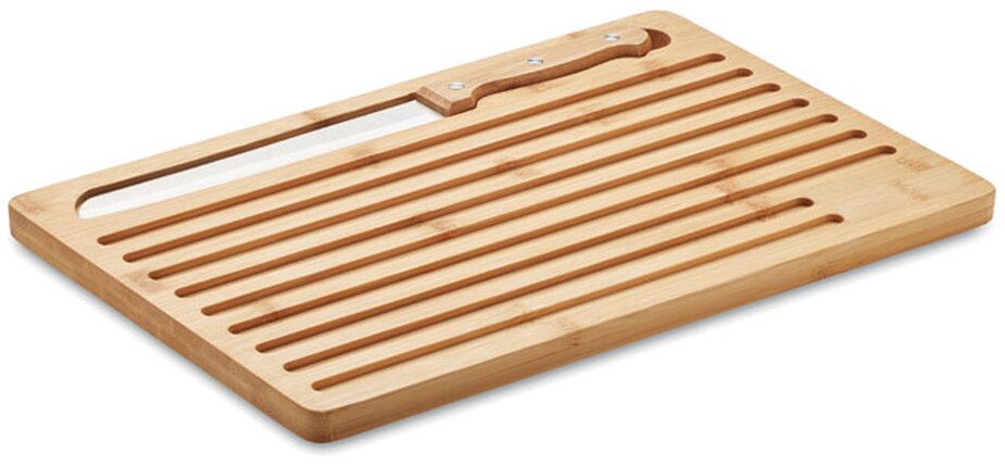 Sada, která obsahuje prkénko a nůž speciálně určené na chleba. Produkt je vyroben z nerezové oceli s bambusovou rukojetí.
