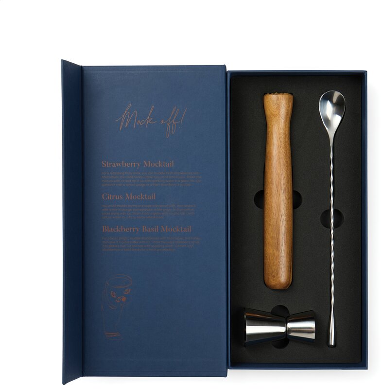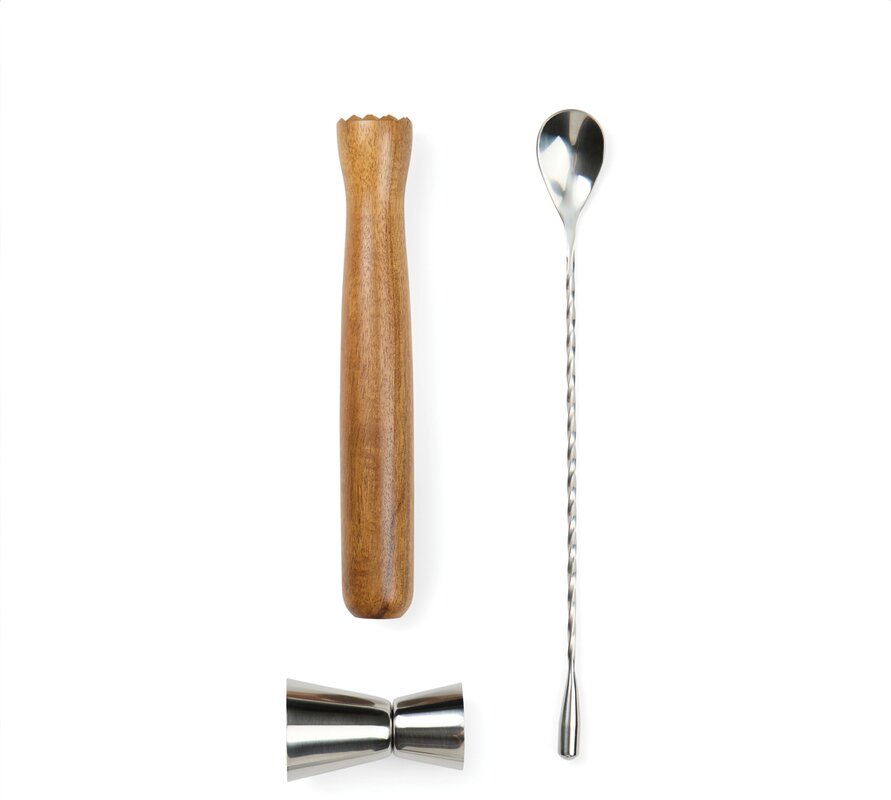 - obsahuje: muddler z akácie s certifikací FSC®, nerezový jigger a barová lžička s vírem