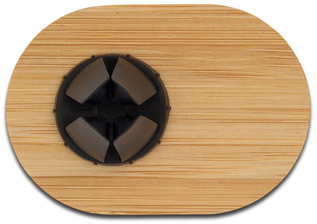 Magnetický držák na telefon z bambusu do auta s uchycením na mřížku ventilace. Součástí je samolepicí destička z kovu na telefon.