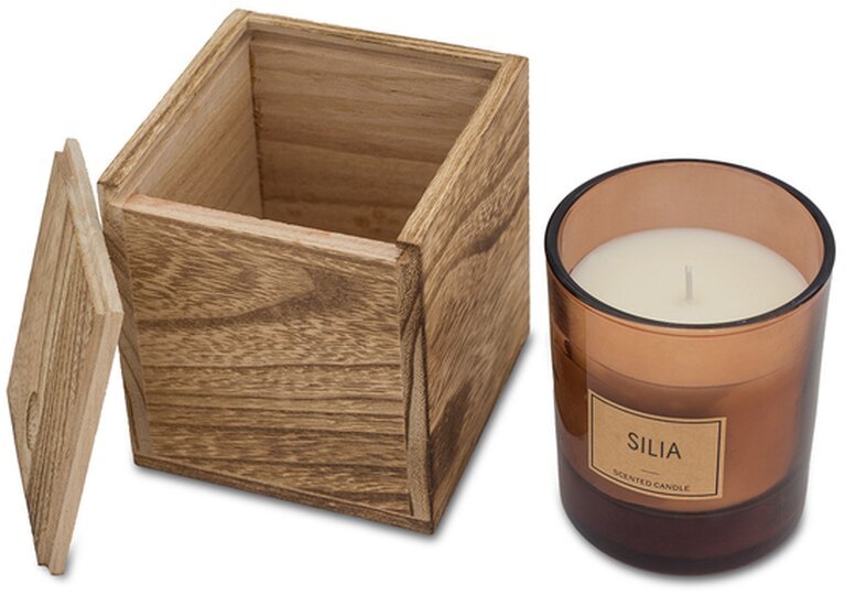 SILIA vonná svíčka ve skle s dárkovou dřevěnou krabičkou Hnědá 031.703