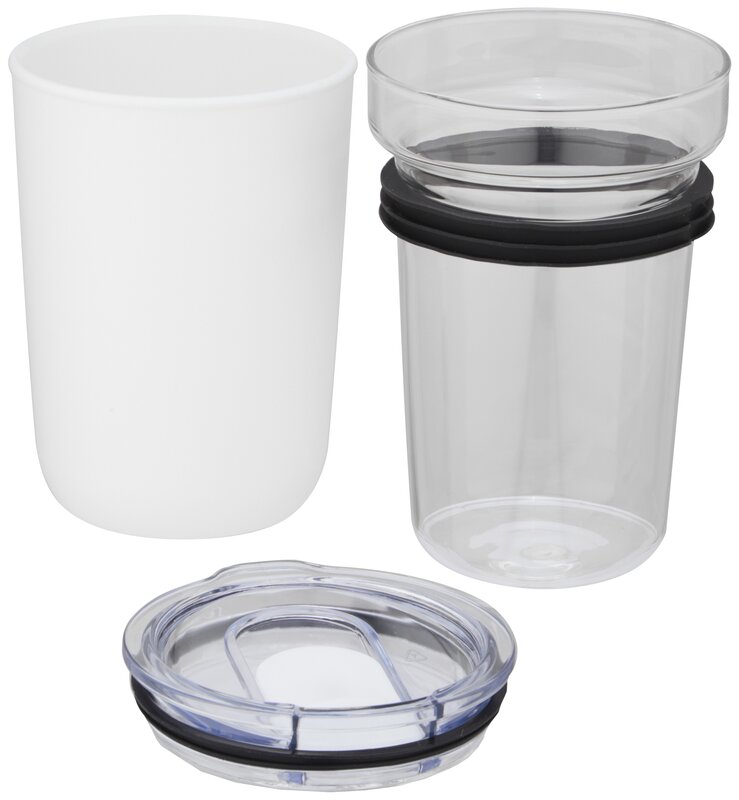 Skleněný hrnek s obalem z recyklovaného plastu Bello, 420 ml Bílá 025.949